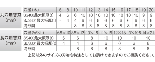 最大穴あけ能力 SUS304 (mm) |